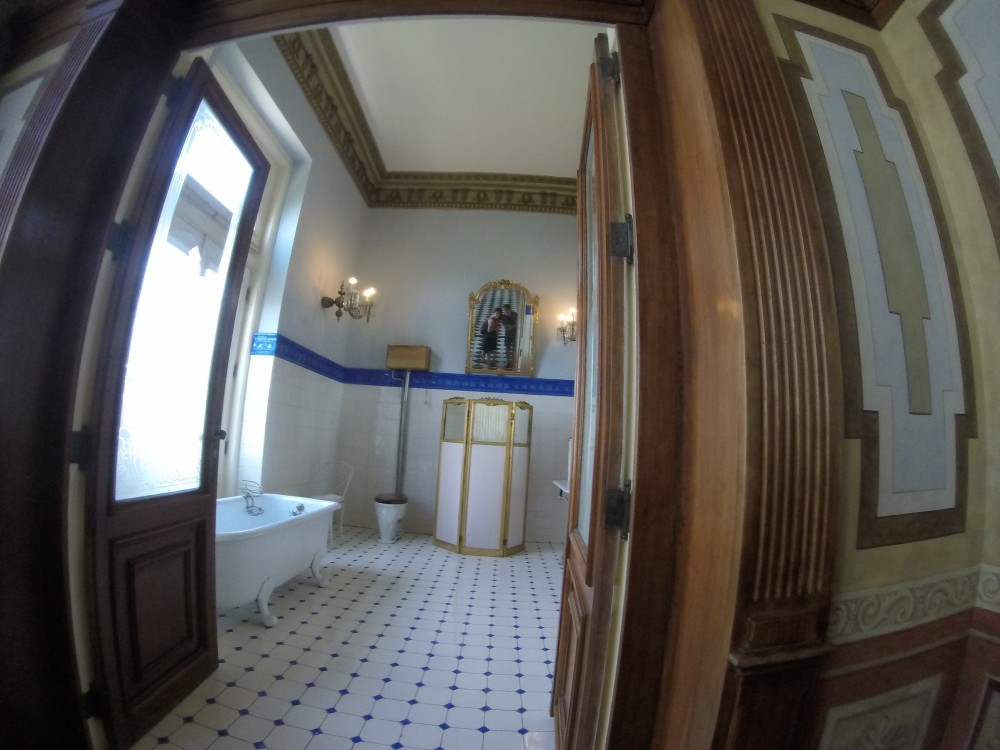 Il faudra me donner l’adresse de votre carreleur. Le sol est superbe et ça brille ! L’escalier est très original aussi. Certaines photos me font penser également à Versailles (la galerie des glaces sauf que là ce sont des vitraux). J’aurais bien goûté aussi aux derniers pots avec les pailles. Appétissant tout ça ! Bises.