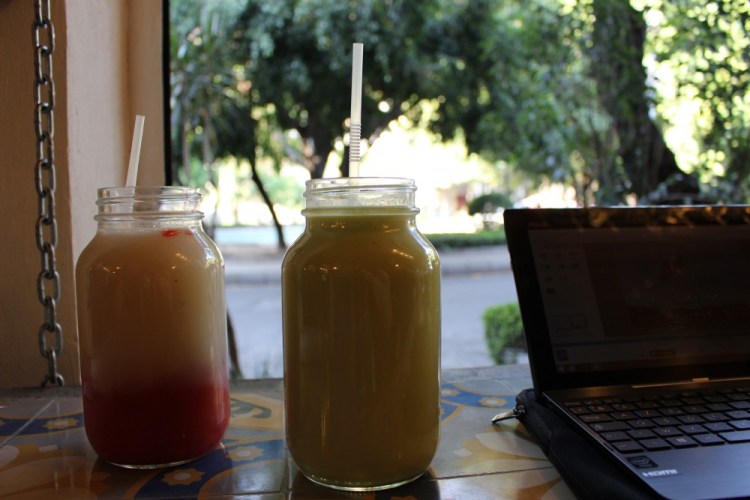 Du coup le guanabana on ne sait pas trop quel goût ça a, vu que c’est systématiquement mélangé avec d’autres fruits assez forts en goût (fraise, kiwi, mangue, ananas). La forme me fait un peu penser au jaque de chez vous. Ici il y a du rhum (on est pas loin des caraïbes après tout) mais l’elixir local c’est plutôt le Mezcal (la tequila en est une sorte spécifique).
