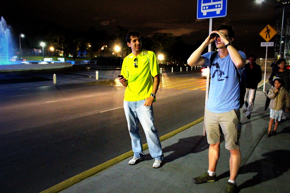 A l’arrêt de bus pour retourner au centre-ville, il était difficile, avec toutes les voitures arrivant en pleins-phares, d’identifier la destination des bus pour trouver le bon avant qu’il ne passe devant nous à toute blinde sans s’arrêter. L’idée a priori lumineuse d’utiliser la mini-paire de jumelles s’est avérée aussi amusante qu’inutile.