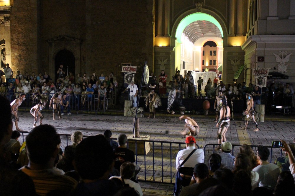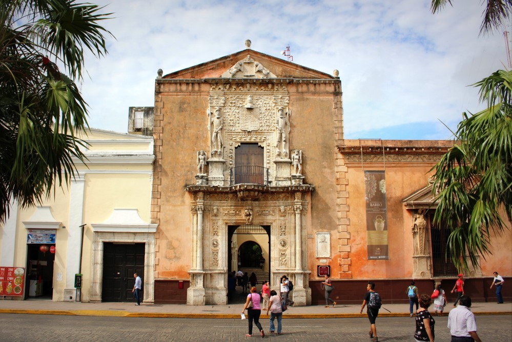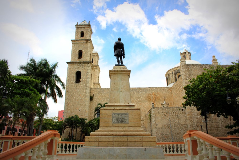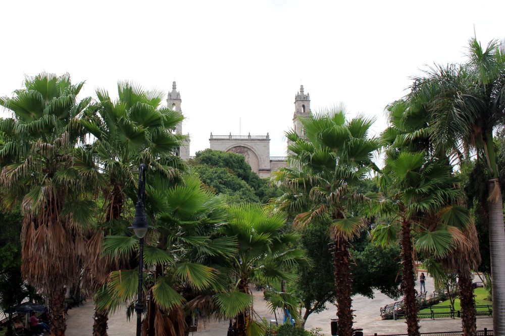 La péninsule du Yucatán a tenu ses promesses et nous a accueillis sous un soleil cuisant et une chaleur écrasante. Du coup cela a été un temps idéal à l’apprentissage des bénéfices d’une bonne hydratation, à la visites de cénotes, et à l’achat de nos billets d’avion pour Cuba. Via couch-surfing nous étions en contact avec Rudy, avec qui nous avons séjourné à Mérida durant quatre jours. Grand amoureux de ces phénomènes naturels géologiques appelés cénotes, ou dolines d’effondrement, il nous a emmené en tester quelques uns parmi les milliers qui parsèment la région. Nous avons passé un super séjour. La photo précédente est le centre de Mérida :