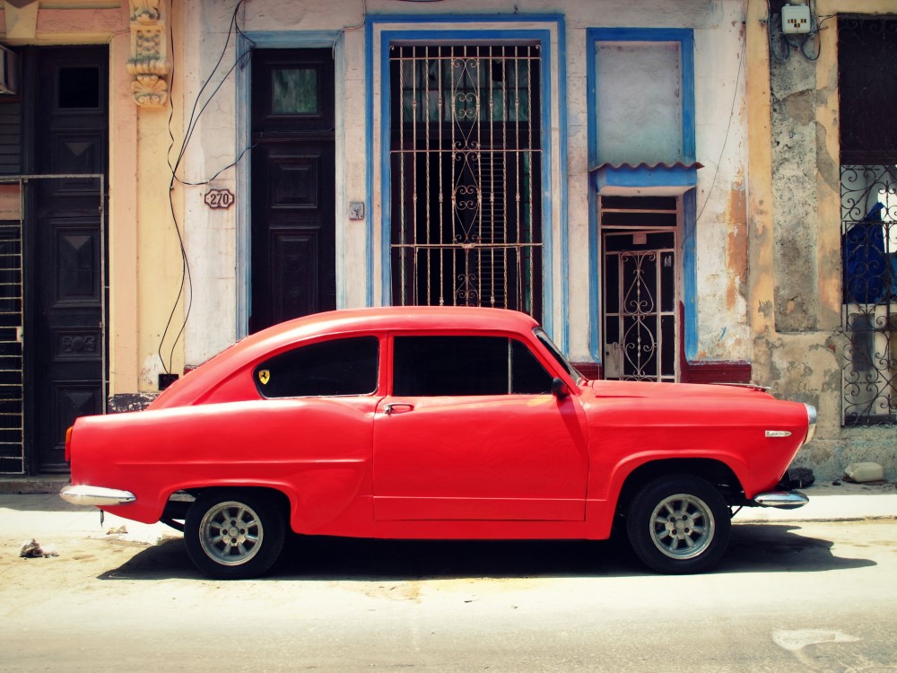 Autocollant Ferrari, couleur rouge Ferrari et jantes en alu, cette Ferrari cubaine a tout d’une Ferrari, ou presque.