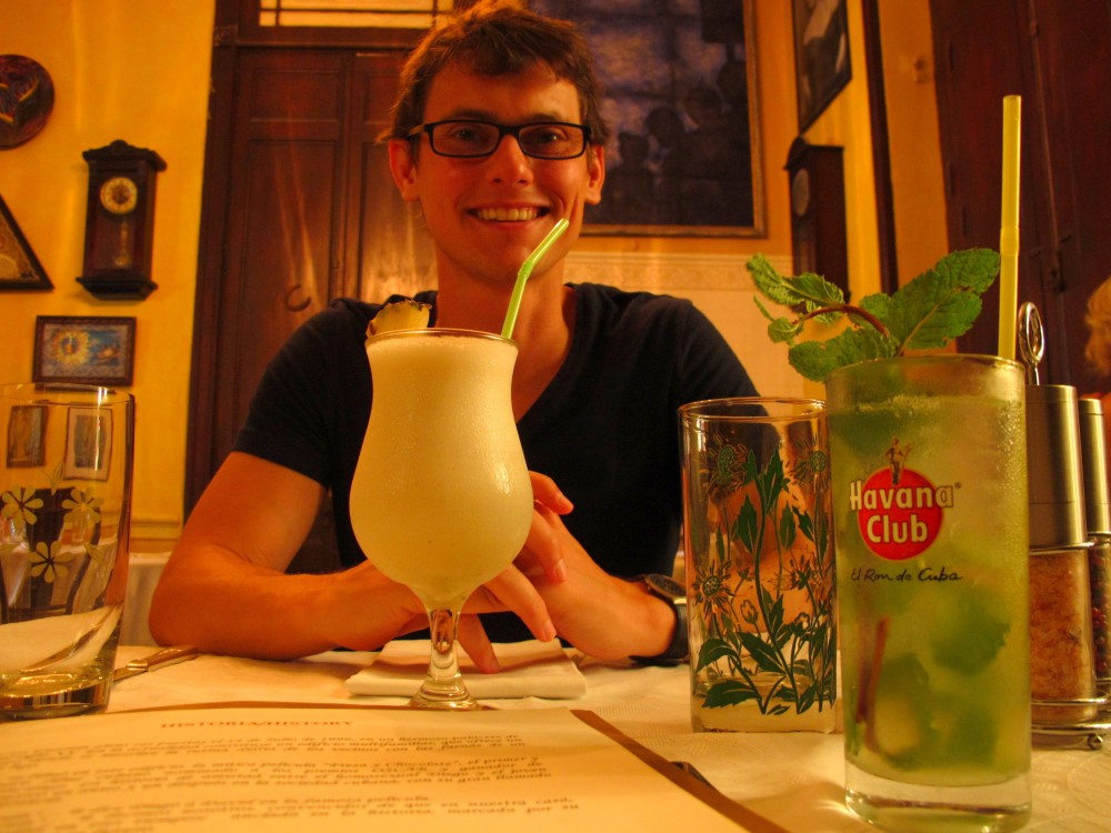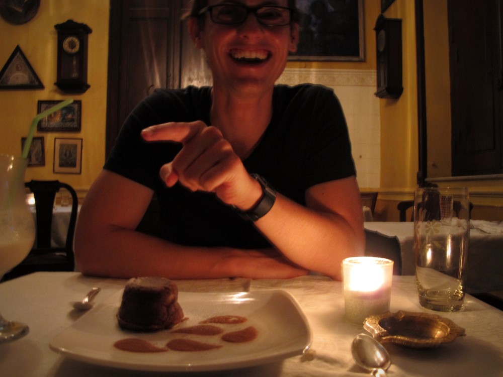 Nous avons commandé en dessert le fondant Chocolate con fresa, et si le fondant était bien au chocolat, la touche de fraise l’était également (sous la forme de poudre Nesquick) car pas de fraises. Ce genre de chose arrive à Cuba. Là je donnais à Anne un cours sur les différentes marques de poudres chocolatées, classées par goût, teneur en cacao et mixabilité.