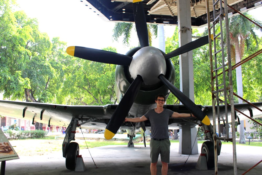 Moi et un avion “Seafury” de fabrication anglaise, utilisé par la force aérienne révolutionnaire durant plusieurs missions de combat lors de la bataille de Playa Girón.