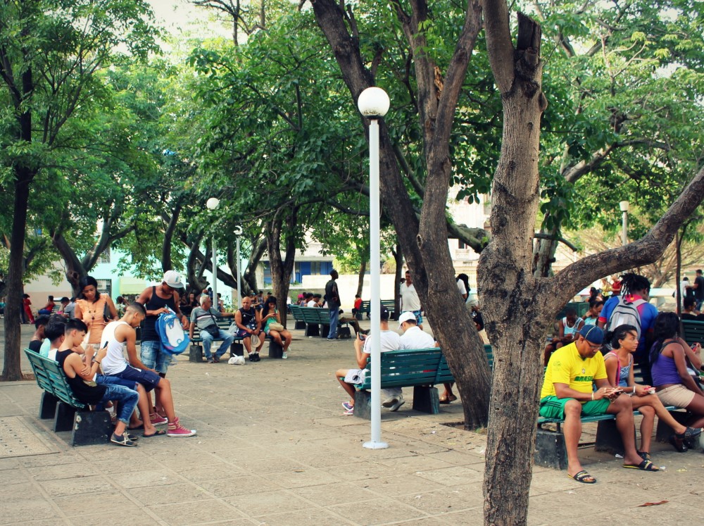 Une unique zone d’accès WiFi dans un parc, et tout le monde est plongé sur son téléphone.