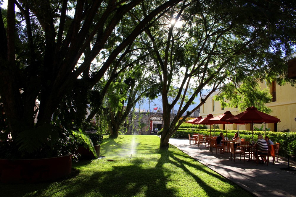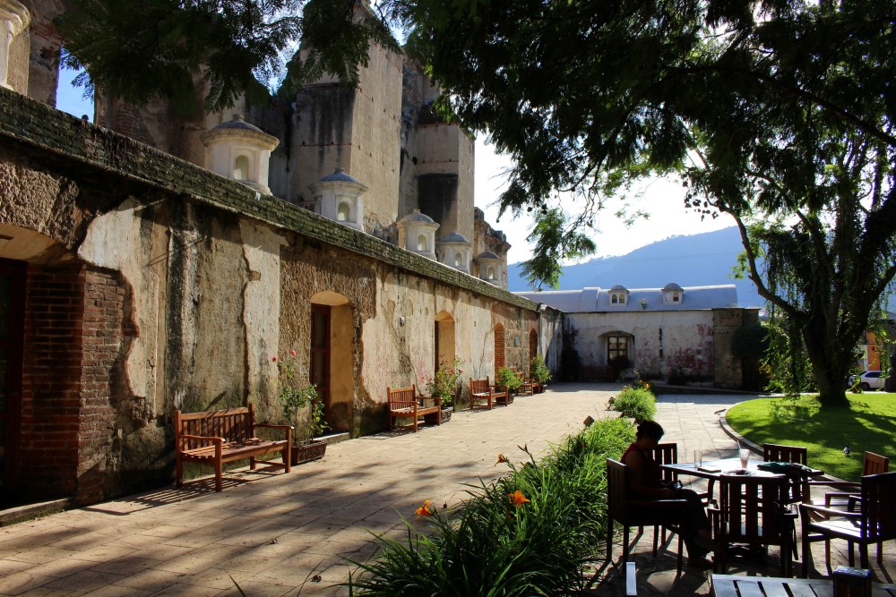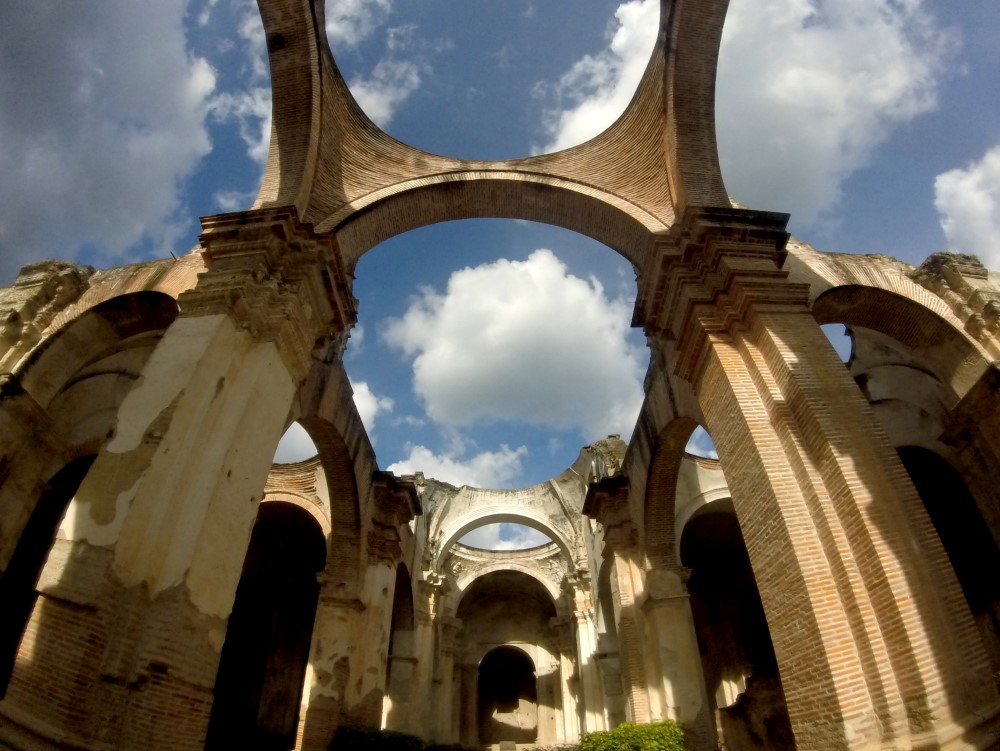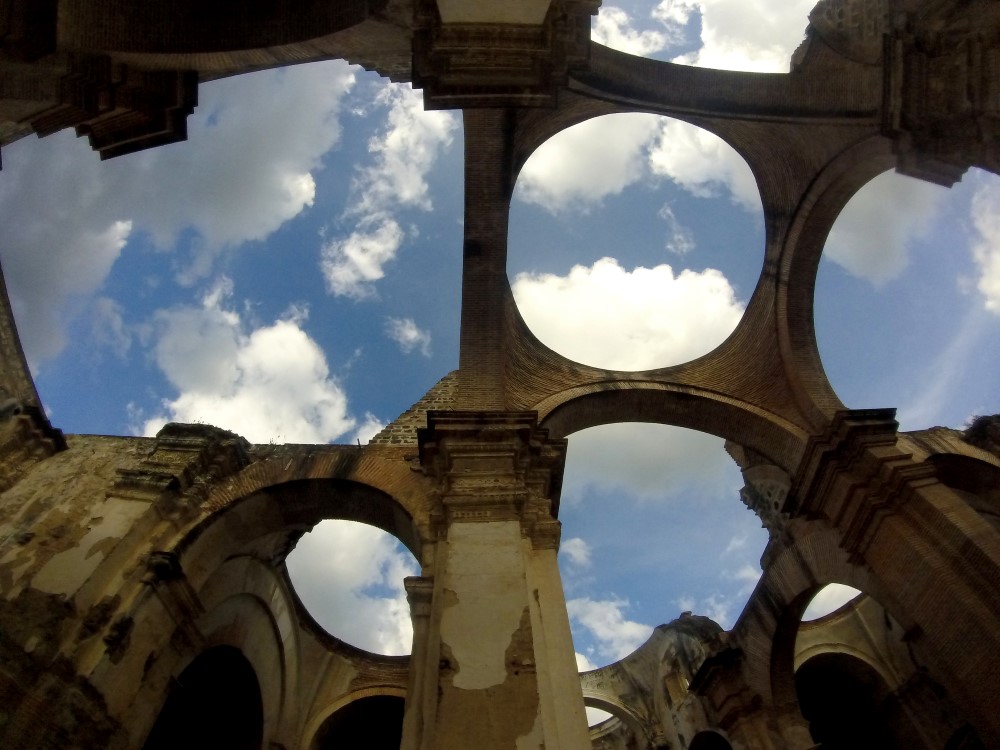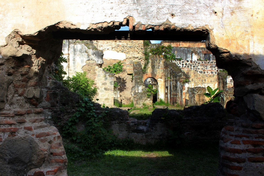 Nous sommes partis en direction d’Antigua au Guatemala, une cité coloniale que l’on croirait directement tirée d’une carte postale avec ses rues pavées, ses façades colorées, ses églises en ruines (ainsi que plein d’autres toujours sur pied), ses agences de tourisme à chaque coin de rue et son constant flot de gringos. A l’instar de Santa María qui domine la ville de Xela, Volcán de Agua surplombe Antigua de ses 3760 mètres, apparaissant ainsi en arrière-plan de toutes les photos et peintures de la ville. L’Antigua d’aujourd’hui a été fondée en 1541 mais a été en grande partie détruite par un tremblement de terre en 1773 qui a transformé la ville en musée architectural à ciel ouvert. De nombreux édifices ont été préservés à l’état de ruine, les impressionantes églises et autres magnifiques bâtiments datant de l’Empire Espagnol.