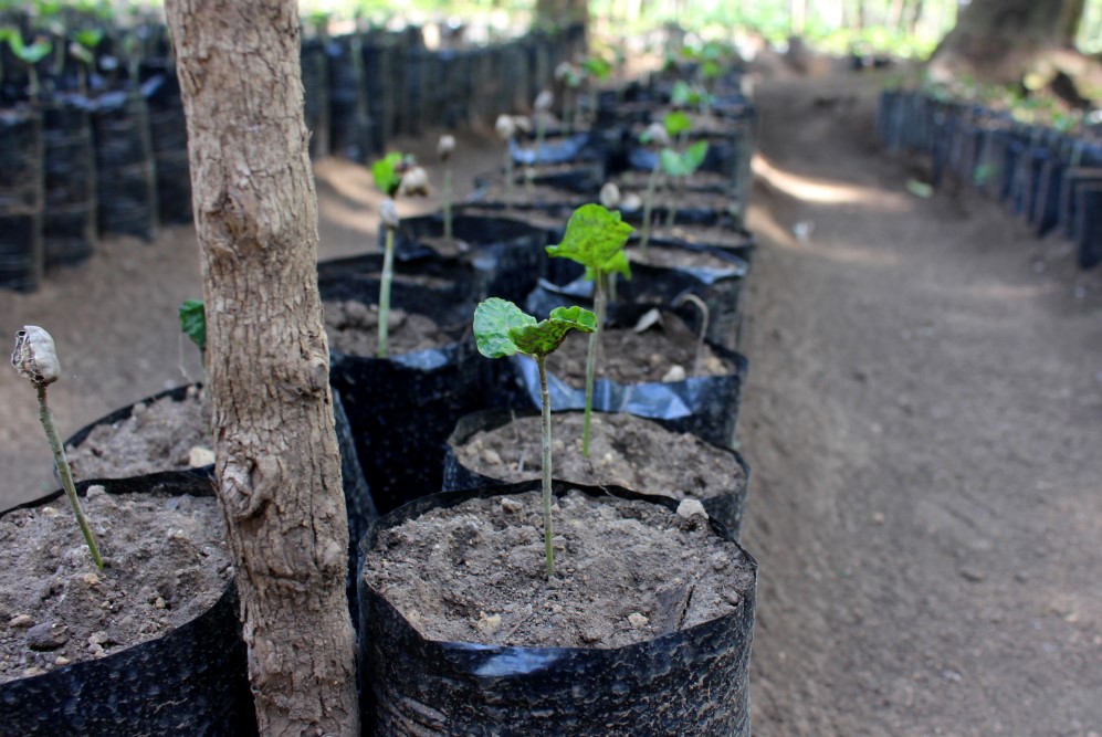 Transport entre la pépinière et les vastes champs de plants de café matures