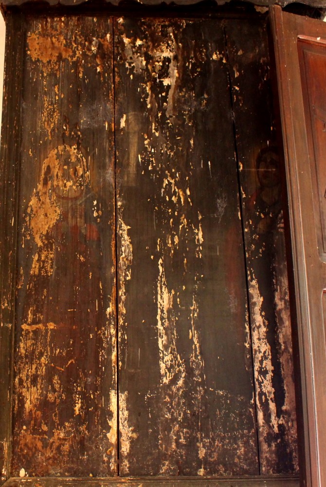 Peinture estompée sur un volet de fenêtre