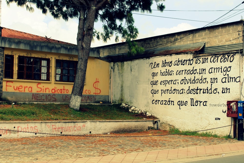 Située au centre du Guatemala et peu touristique, nous nous sommes dit que la ville de Cobán serait un lieu idéal pour nous relaxer et nous concentrer quelques jours sur le blog. Nous avons vite réalisé que Cobán n’était pas si tranquille que ça, et que la ville a été choisie comme point de rassemblement de nombreux paysans venus protester contre le gouvernement. Malgré l’agitation nous sommes finalement restés là près d’une semaine, d’une part séduits par la chambre d’hotel à 100Q (11€) pour deux que nous avions dénichée, et d’autre part parce que nous avions trouvé une crèperie fournissant un endroit parfait pour travailler.