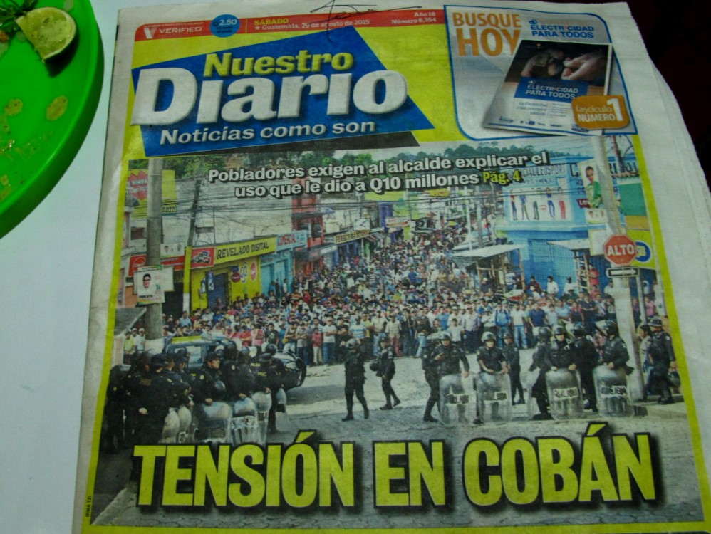 Pour notre dernier petit-déjeuner à Cobán, une grande nouvelle faisait la une : “Décision Historique, le Président perd son immunité”