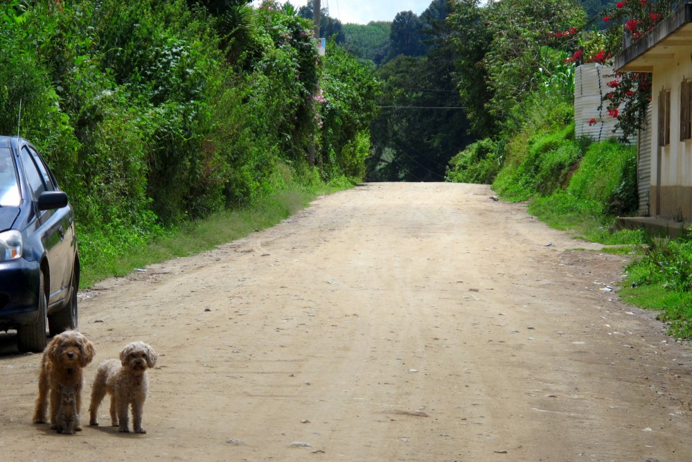 La route vers Chimiyá et un comité d’au revoir. Notez le chaton assis à l’avant du gang.