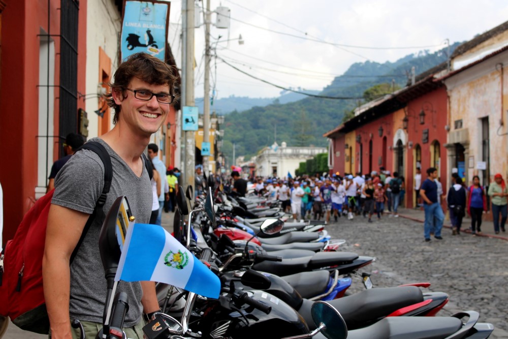 Nous avons été accueillis à notre arrivée à Antigua par de nombreuses festivités. La fête de l’indépendance allait se tenir le lendemain (15 septembre) et la ville était remplie de ces groupes de coureurs portant des antorchas, torches, et courant (tradition oblige) de ville en ville au son de nombreux sifflets.