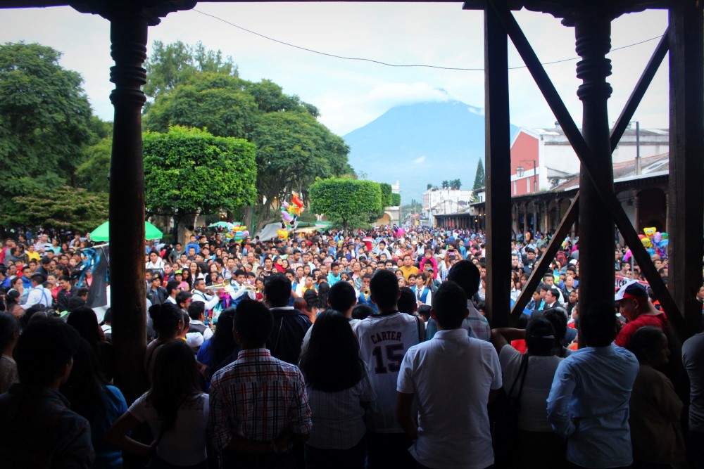 Parade de l’indépendance, avec Volcán de Agua en arrière-plan