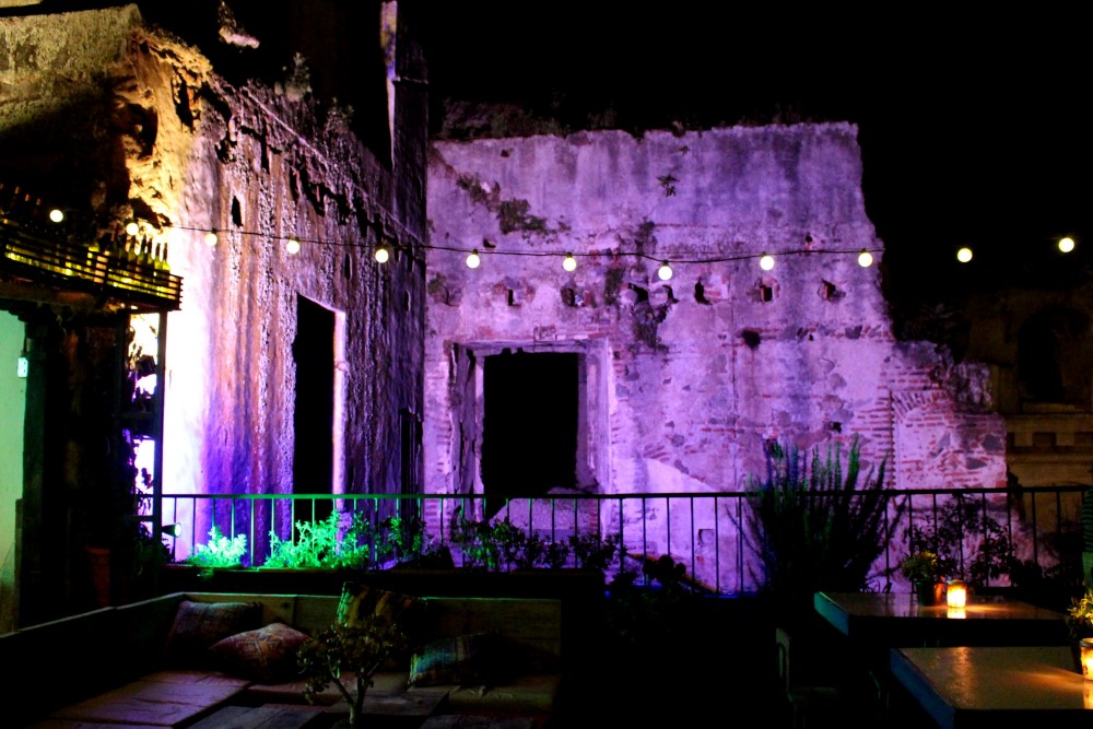 Nous sommes allés manger dans une pizzeria située juste à côté des ruines d’une église.