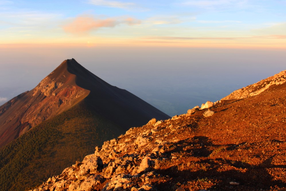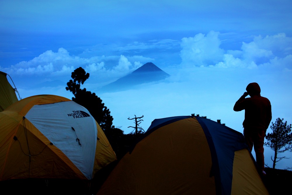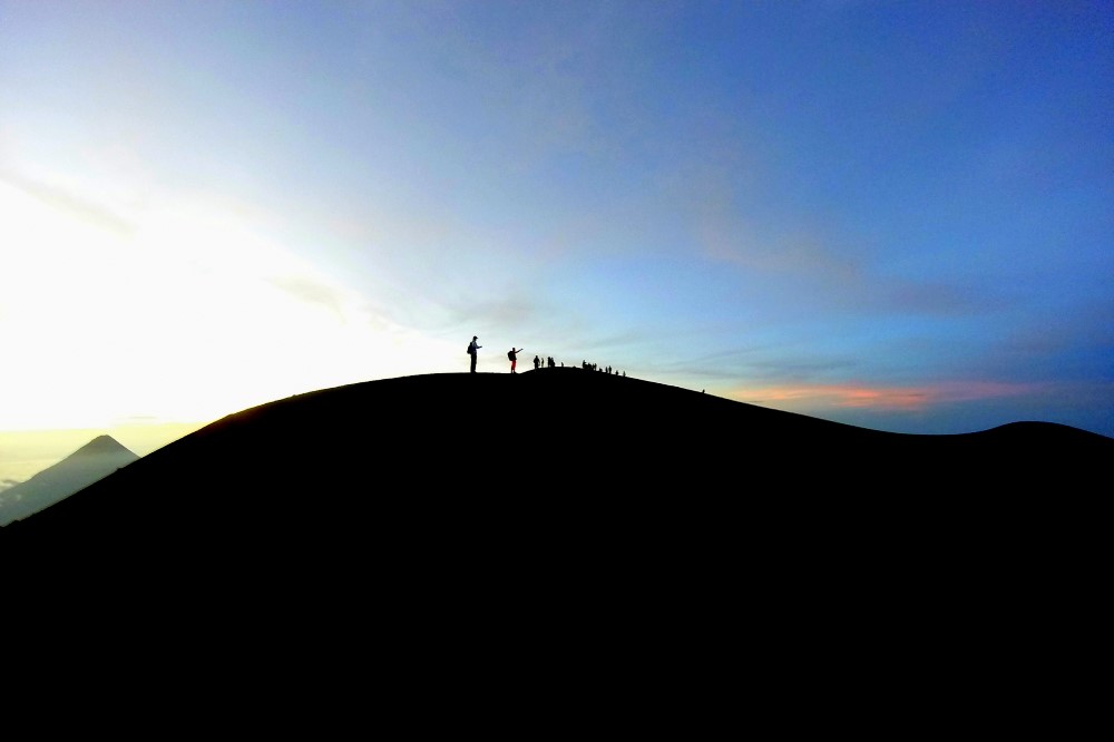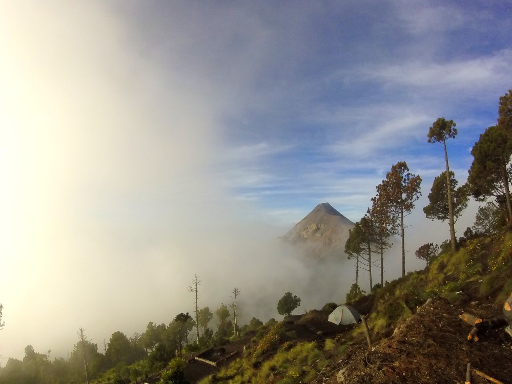L’ascension d’Acatenango est un copié/collé du trek que nous avions fait pour l’ascension de Tajumulco : Une journée de grimpette vers le camp de base à 3600 mètres d’altitide, quelques heures de sommeil sous tente frigorifiée, puis les derniers 300 mètres de dénivelé à la lampe frontale pour s’offrir un lever de soleil magnifique et réchauffant depuis le sommet. Le trek est plus éprouvant que celui de Tajumulco, mais l’effort est largement récompensé par le panorama offert aussi bien depuis le camp de base que depuis le sommet sur Volcán de Acatenango.