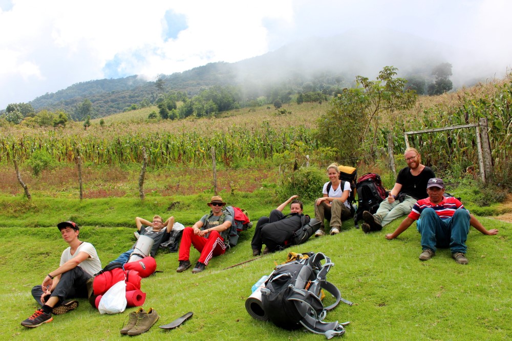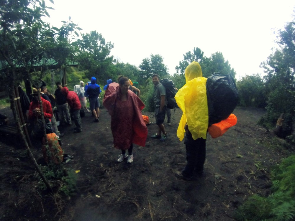 Un vent de panique s’est abattu sur le groupe durant la pause déjeuner quand les premières gouttes de pluie sont tombées. Deux minutes plus tard tous les ponchos colorés et housses de protection étaient en place, et la pluie s’est arrêtée.