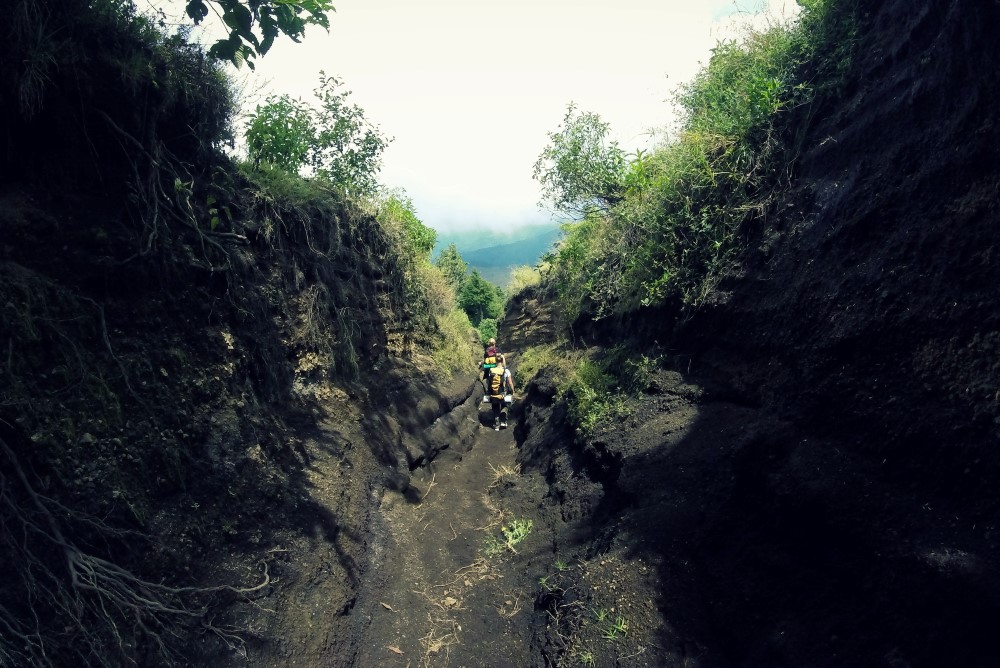 La météo clémente le permettant, nous avons pris un raccourci à travers les rigoles creusées par les torrents d’eau de pluie