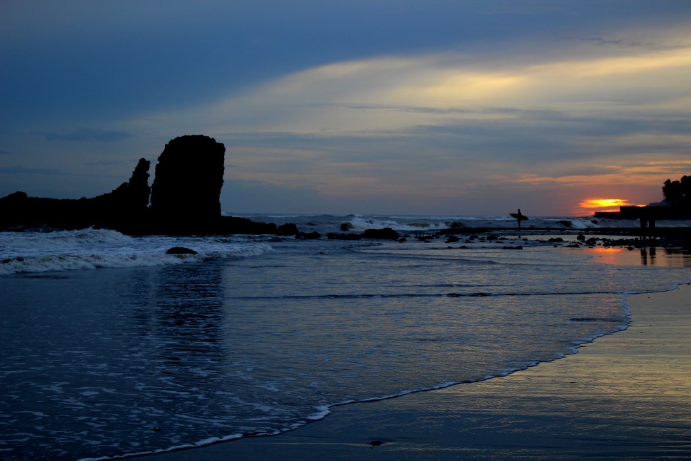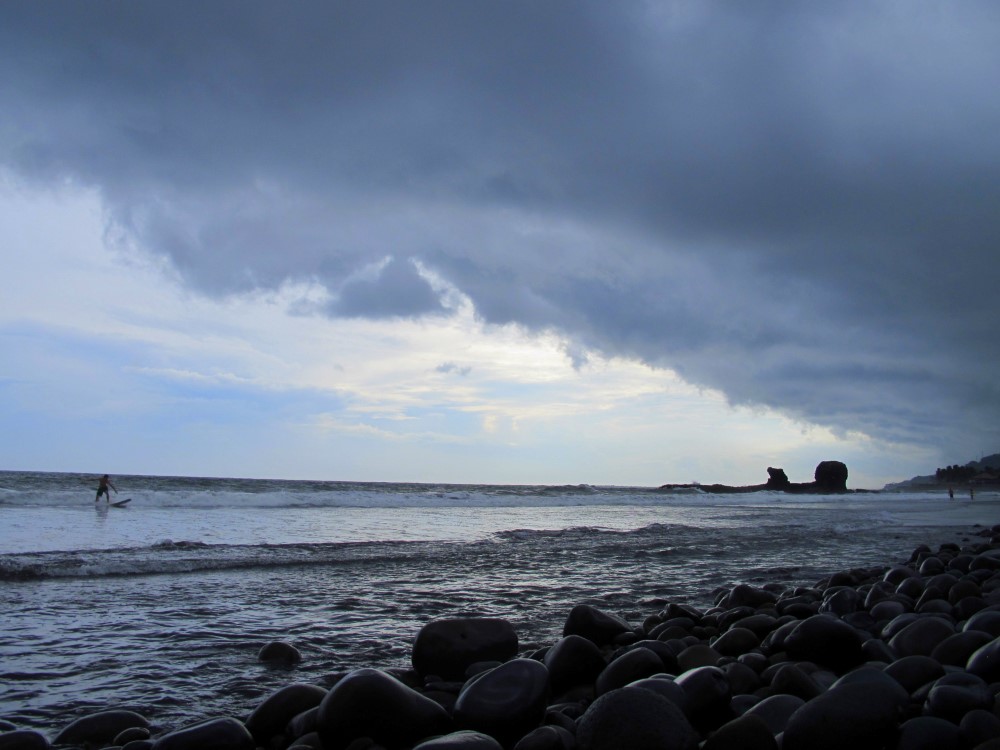 Nous avons posé nos sacs à dos à El Tunco un peu par hasard. El Tunco est une bulle touristique, connue dans le monde du surf, située sur la côte d’un pays en guerre contre la drogue, les gangs et la police s’affrontant jusqu’à la mort. Assis dans notre hutte privée, le ventilateur vrombissant à pleine vitesse en harmonie avec la pluie torrentielle s’abattant dehors, nous parcourions l’actualité d’El Salvador sur le site de la BBC quand nous sommes tombés sur ce chiffre : 904 homicides comptabilisés durant le mois précédent (Août). Même si aucun touriste ne figure dans la liste des meurtres, cette statistique nous a confortés dans le fait de rester à l’écart de la capitale San Salvador et au final nous sommes restés quatre jours dans notre bulle pacifique avant de continuer notre chemin et quitter le pays.