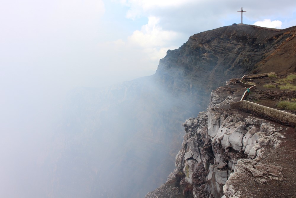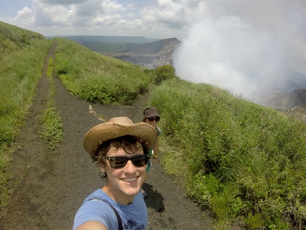 First stop, a museum explaining everything about volcanoes. There was this very helpful topographical map of the park, so I’ll explain: the whole area is the Masaya caldera, an area that was once a huge volcano that collapsed. Thousands and thousands of years resulted in reformation of the Masaya volcano, its biggest opening being the San Fernando crater (the crater we would later hike around), the yellowed crater off to the right. The crater in the middle is the Santiago crater, one of three located on the Nindiri volcano. Santiago is the showstopper that everybody visits as it is constantly spewing impressively large clouds of sulfur into the air. And they allow tourists to walk right to the edge and take a peek in.