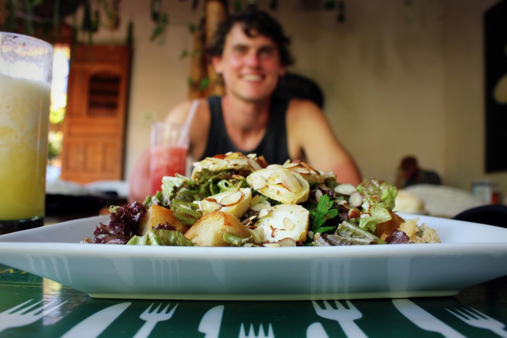 A well-deserved salad; Julien managed to get a nicely defined sunburn