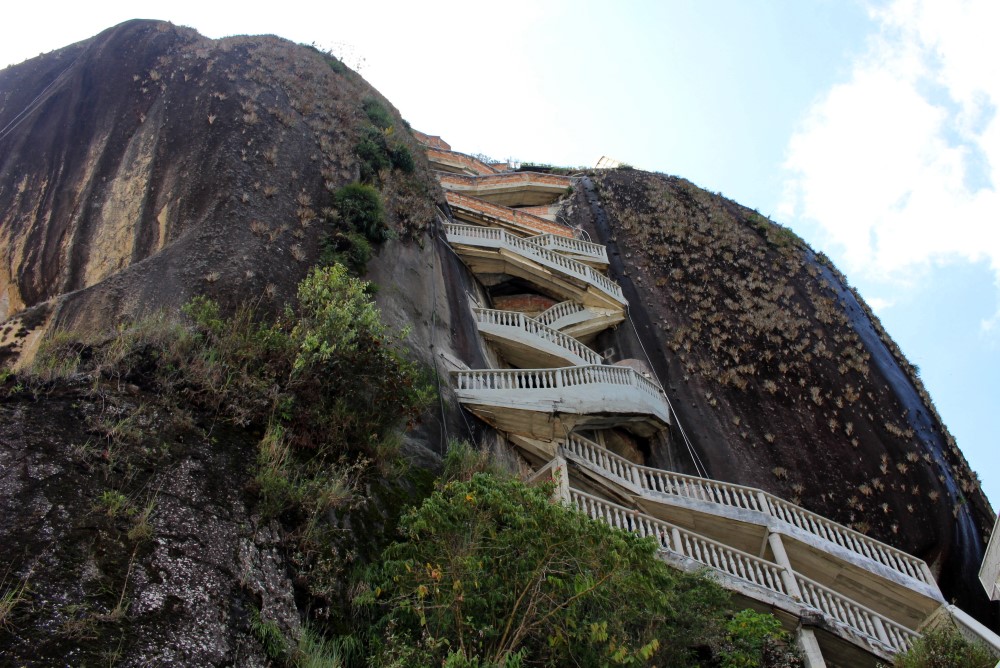 Two hours from Medellín is the mysterious Piedra del Peñol; our guidebook stated “locals will try to tell you it is a meteorite[…]” but then did not go on to explain how this huge rock ended up in the middle of this area. A sign boasted that from the top of this 220m rocks is the world’s most beautiful view. I am generally leery of such bold statements but after climbing the 740 stairs (about 2nd floor of the Eiffel Tower, this is how I see heights) I was, indeed, delightfully impressed by the view.