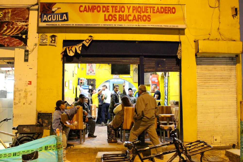 Tejo, a game that is basically jazzed up bean bag toss. Rather than tossing bean bags, one throws weighted metal, and rather than trying to get it through a hole, you try to hit a target filled with firecrackers making for a very loud and startling game.
