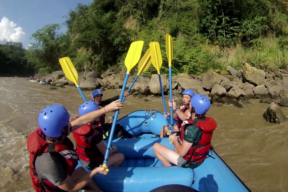 Ce “touriste” était notre guide, l’un des membres de l’équipe nationale colombienne de rafting. Il avait une GoPro visée sur le casque. Les vrais touristes (i.e. nous) sont uniquement là pour l’écouter hurler les ordres et pagayer 🙂 C’est impressionnant la rapidité avec laquelle il remonte sur le raft quand il se retourne.