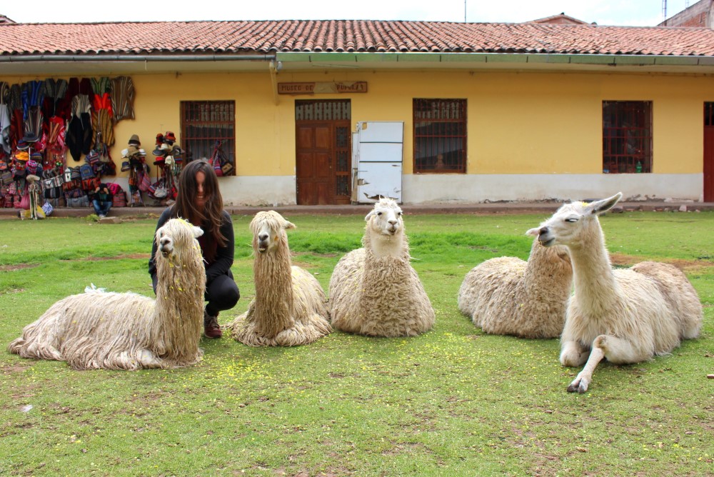 Les deux sur la gauche sont des alpacas avec dreads, les deux d’à-côté sont normaux, et le dernier sur la droite, bien qu’étant le plus grand de tous, est en réalité le bébé du groupe, un lama de tout juste un an.