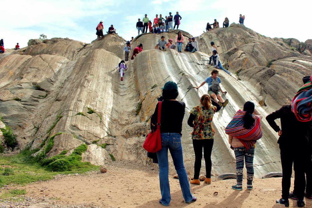 Perché sur un plateau deux kilomètres au dessus de Cusco, Sacsaywamán est un site naturellement protégé par d’abruptes falaises, seul un côté du site a nécessité la construction de murs de défense. Ce mur en zig-zag est l’un des trois construits pour ressembler à un éclair. Le nom Sacsaywamán amuse beaucoup les touristes, prononcé à voix haute on dirait Sexy Woman.