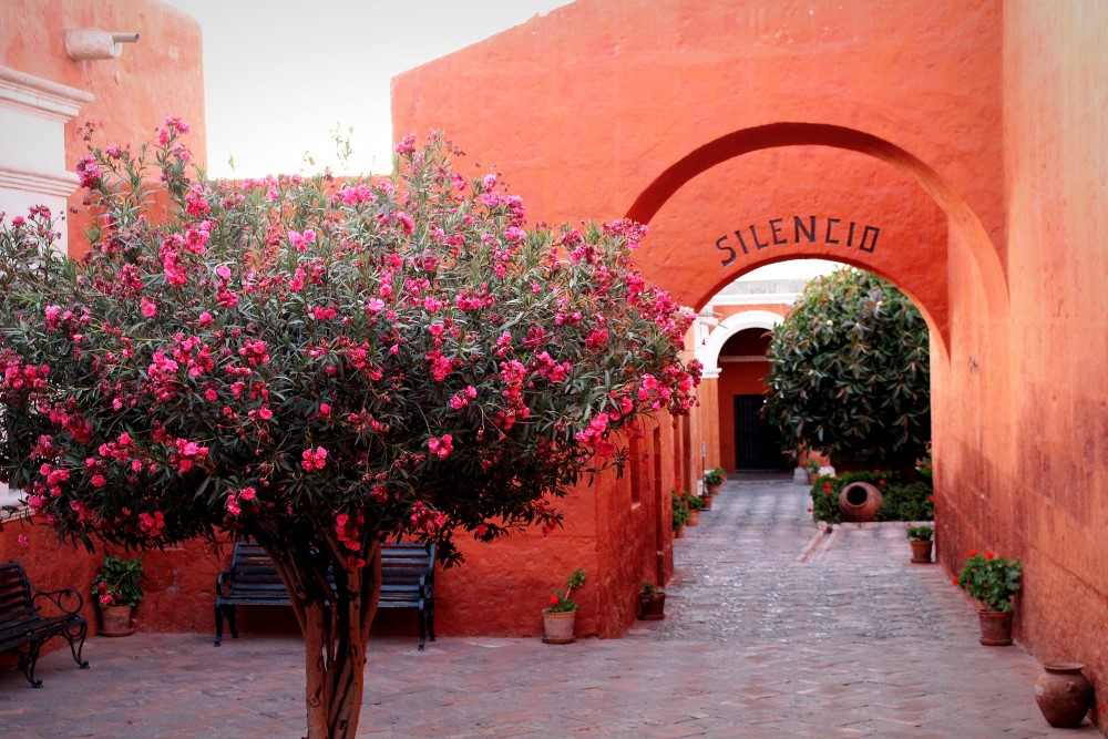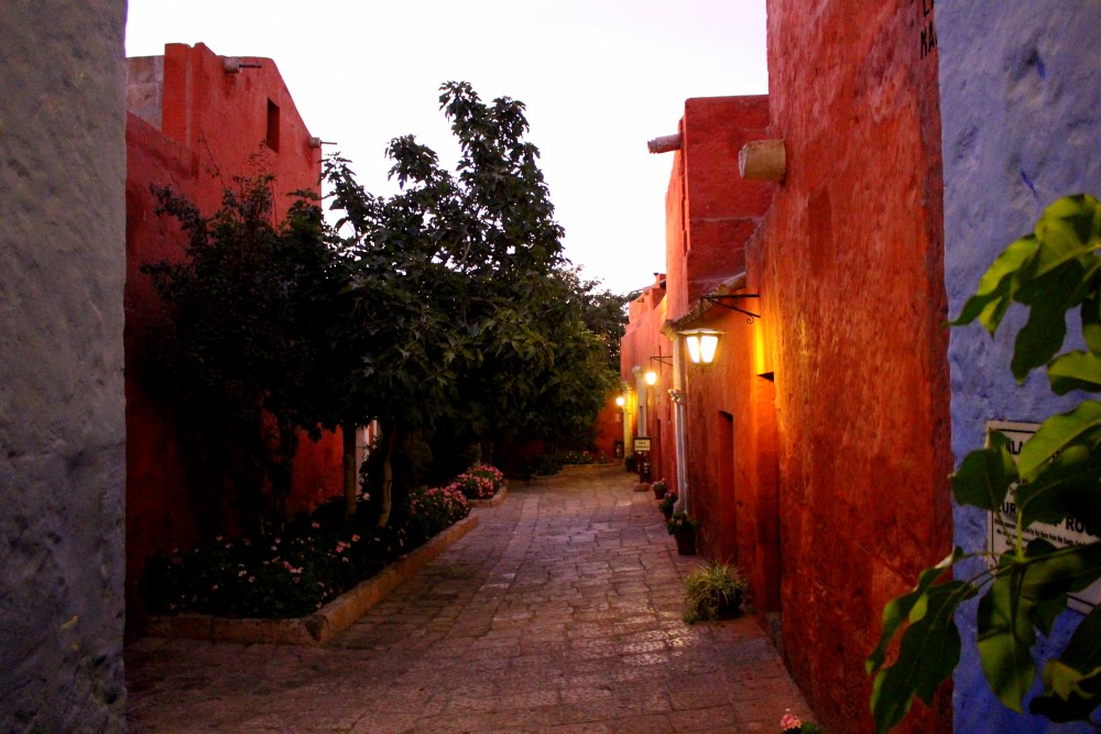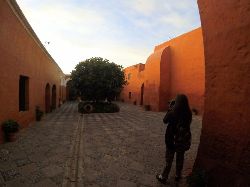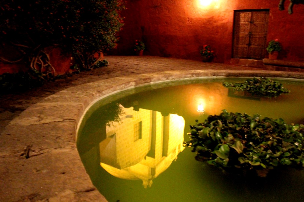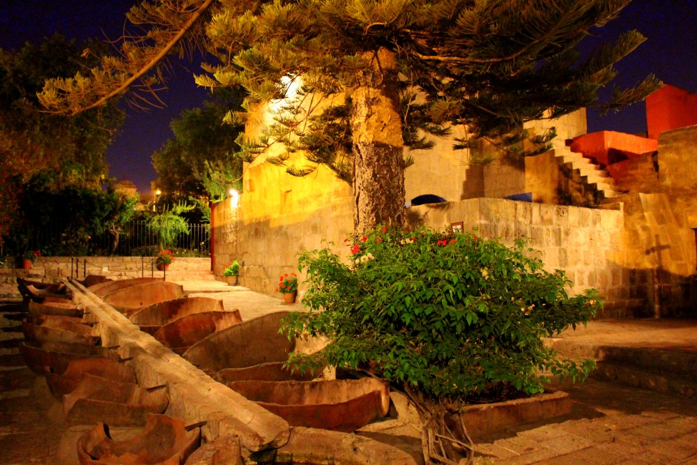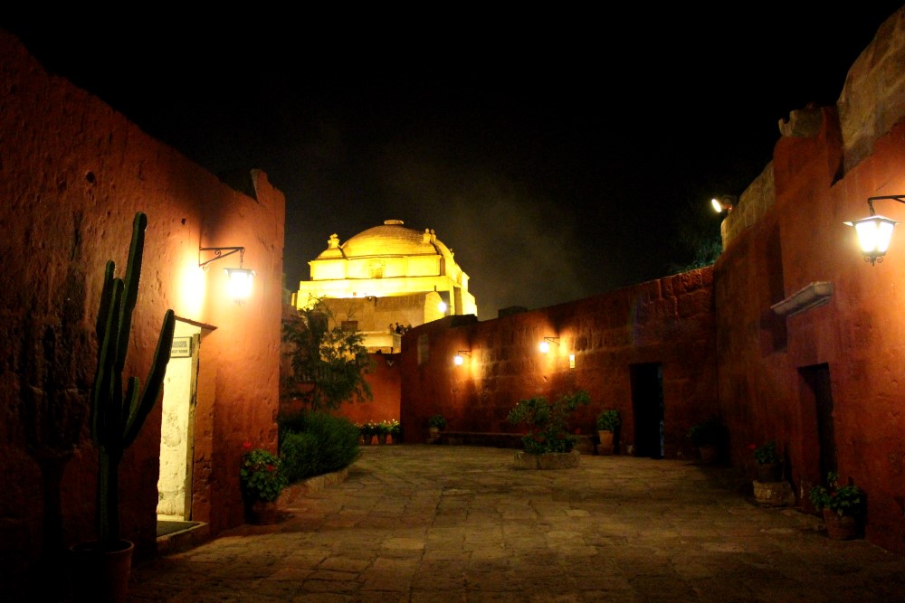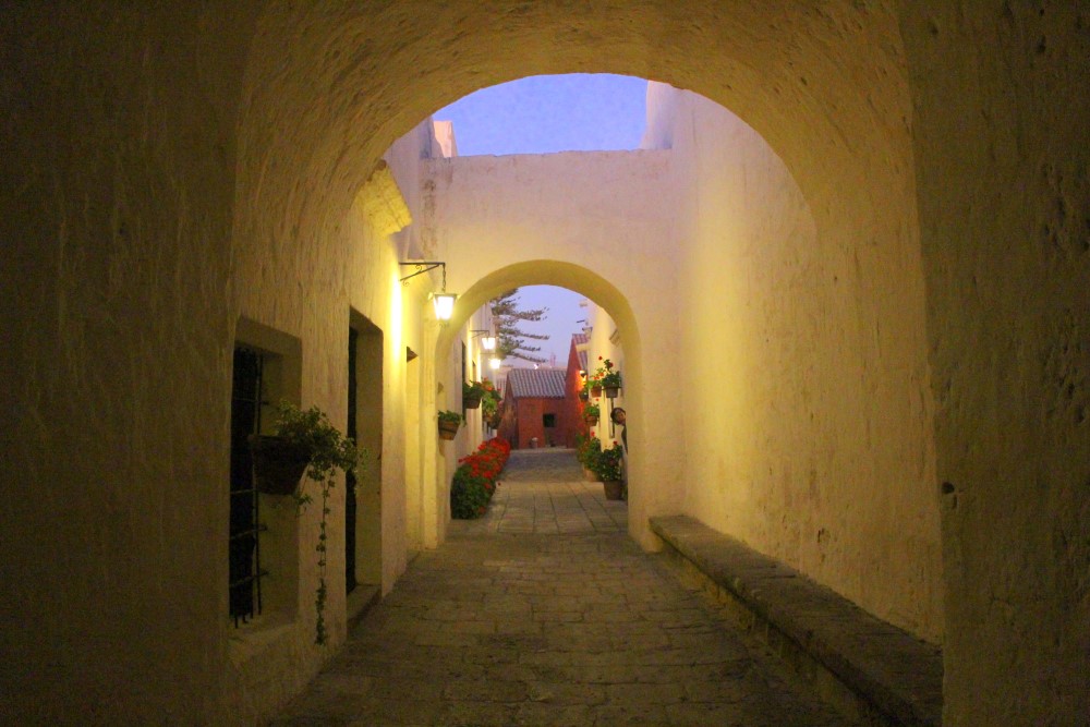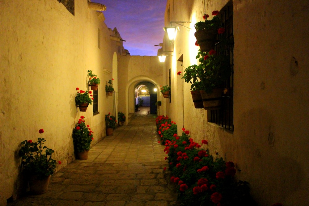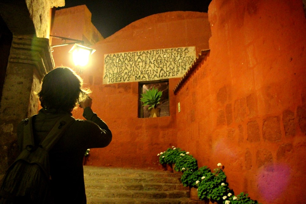 Monasterio de Santa Catalina, un monastère du XVIème siècle : une “citadèle à l’intérieur de la ville”. Nous avons pu visiter le monastère durant l’ouverture nocturne du mardi et nous avons apprécié voir les rayons du soleil couchant faire place à la lumière des lanternes sur les petites ruelles, cours intérieures et autres pièces mystérieuses. A ses débuts le monastère habritait près de deux cents nonnes – filles de riches familles espagnoles – et trois cents servantes jusqu’à ce qu’il soit ouvert au public en 1970. Trente nonnes habitent toujours les lieux aujourd’hui.
