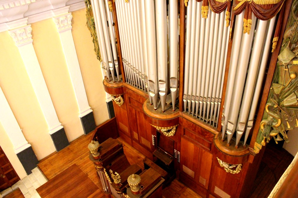 A big earthquake in 2001 destroyed the left bell tower, badly damaging the pipes of the organ, but all has been replaced, and the organ is up and running.