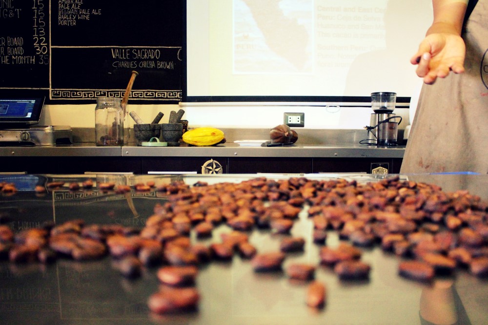 At our most frequented cafe/beer-supplier, there was an opportunity to take a chocolate-making class. Julien happily attended, and the two-hour lesson started with explanations from the bean.