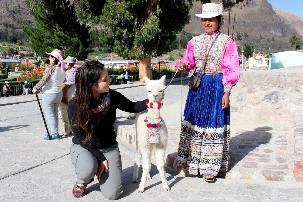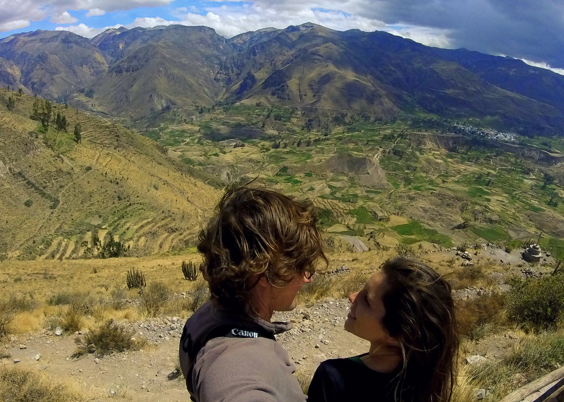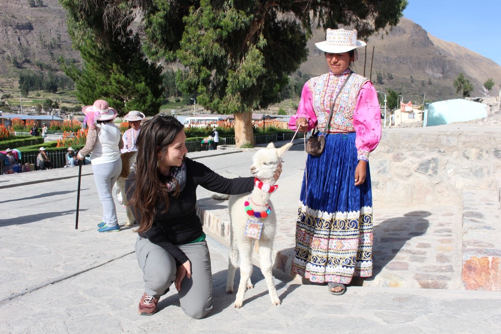 I LOVED the pictures of you with the 4 week old alpaca and Julien with an eagle on his head. The Colca Canyon is beautiful – the colors are incredible.