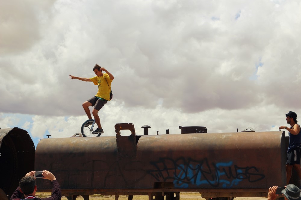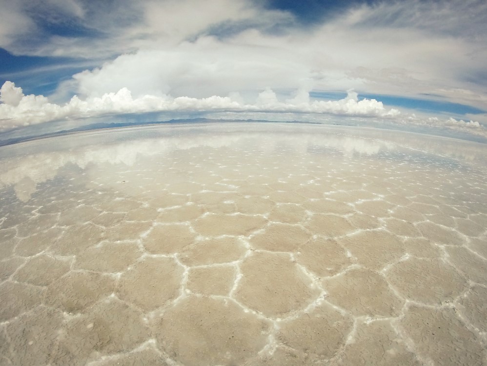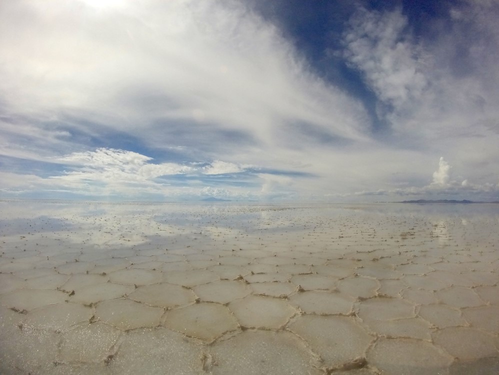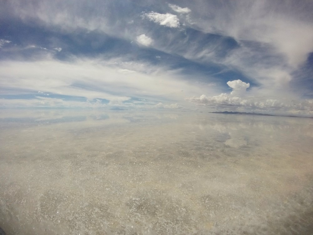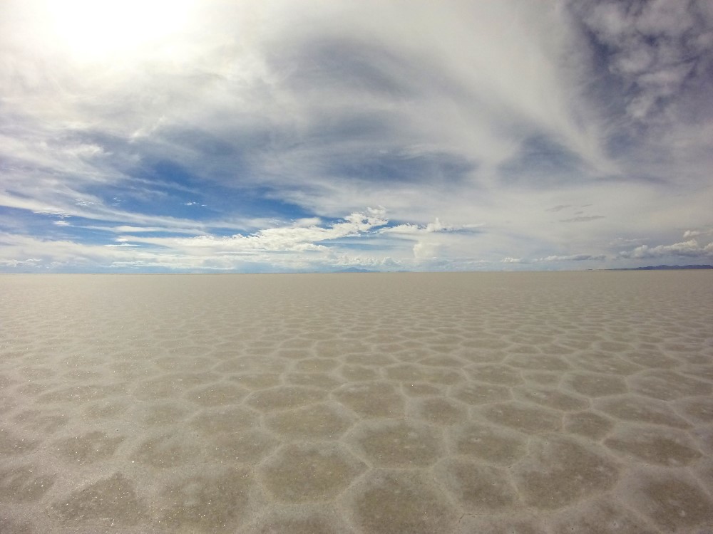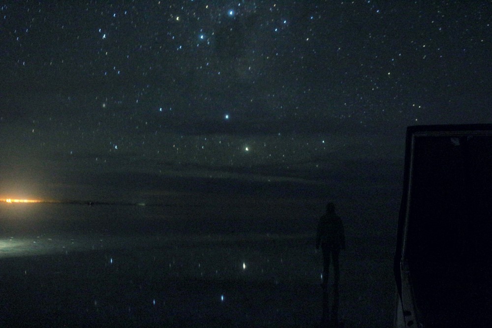 From the water balloons of Sucre we headed to the Salt Flats of Uyuni. Potosรญ, one of the highest cities in the world, was en route, but we decided not to stop by partly because the top attraction is to watch exploited mine workers in the mines, partly because talk of road blockades was always on the horizon and we didn’t want to get stuck in the airportless city. We arrived in Uyuni in the early evening and, as we were waiting for our bags to unload, we met four friendly Germans, fast friends with whom we immediately booked two tours. The first, a night trip to the Salt Flats to enjoy the stars reflected in the shallow water; the second, a three-day excursion across the Salt Flats and desert, destination Chile.