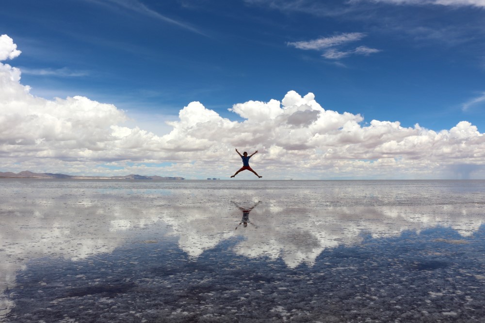 Next stop, the Uyuni Salt Flats. The first rains of the rainy season had recently fallen, so we got to experience the gigantic mirror effect.