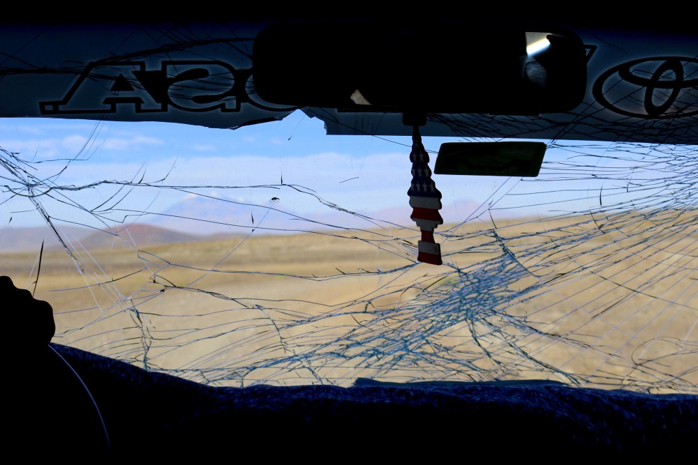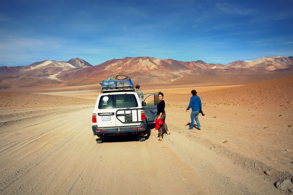 Our driver Mario somehow managed to be both totally incompetent as well as being the guy who would get us through the roadless desolate desert, hitting up remarkable nature along the way. The jeep wasn’t tiny, but with all the bumps and pot-holes in the gravel road, we had to be attentive so as not to bump our heads on the ceiling. About an hour into our drive, we all saw a huge dip up ahead, consequently ducking in the car; all but Mario, ever-squinting (it’s questionable how much he could actually see) who carried on at his usual clip (too fast) and we plunged straight into the crater. The badly placed gasoline canisters and spare tire came crashing onto the windshield, and we spent the following two days looking through this lens.