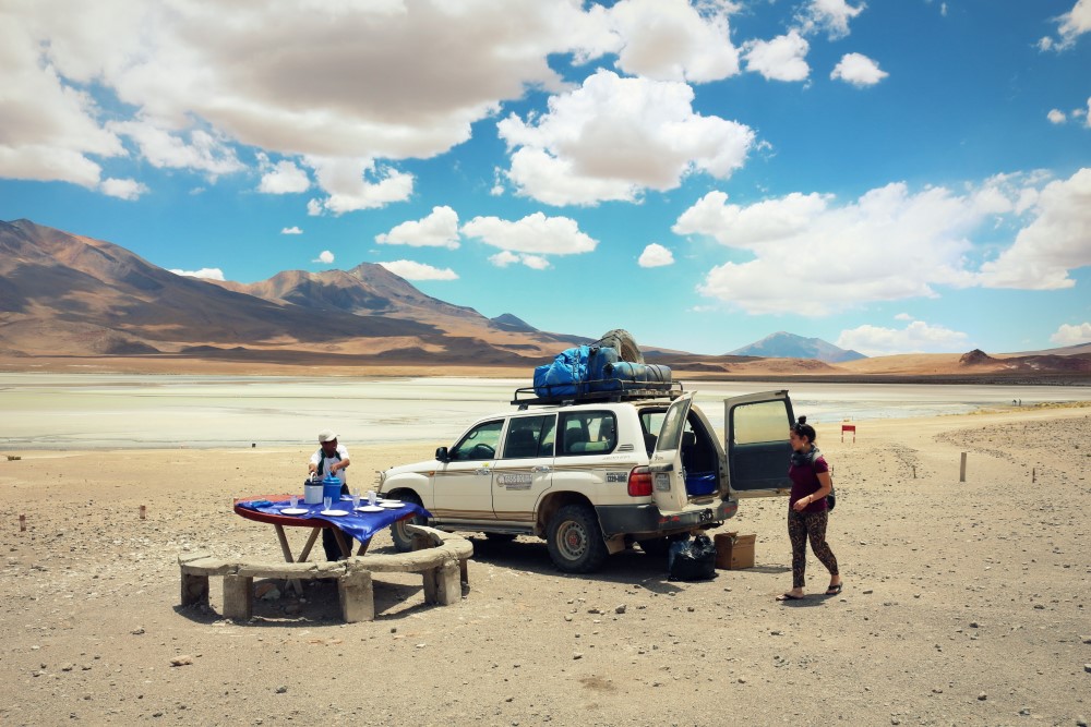 2166 Uyuni Salt Flats Bolivia Laguna Hedionda Lunch TimeLuxury lunch; if there was one exceptional aspect to the tour (besides the landscape), it was the meals Mario prepared for us which were always tasty and copious.