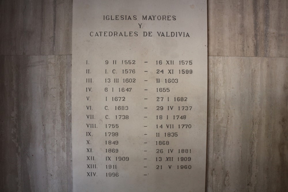 The rise and fall of Valdivia’s most important churches and cathedrals, the falls corresponding with years of strong seismic activity. No sugar-coating around it, the current cathedral has a space after the 1996 โ