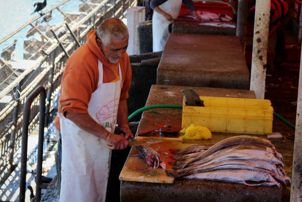 On Sunday we headed to the Feria Fluvial, the fish market. As you can see, the fishermen had an attentive garbage disposal.