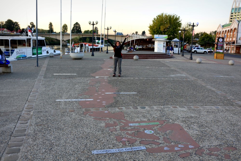 Even though we had bused about 30 hours south from where we started in Chile, we were still only at the halfway point of the country : I’m standing in Valdivia, Julien is at the southern tip of Patagonia.