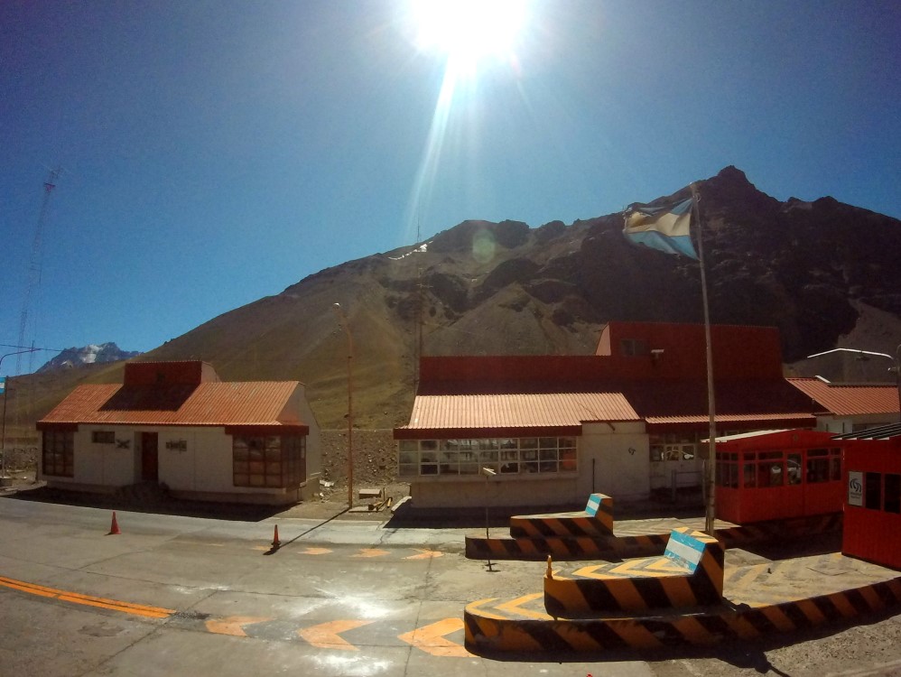 The Chilean/Argentine border crossing is perched in the Andes at 3,200m (10,500ft) and looked like a huge hangar, perfect for taking shelter from the strong sun, though in winter it surely provides shelter from snowfall.ย