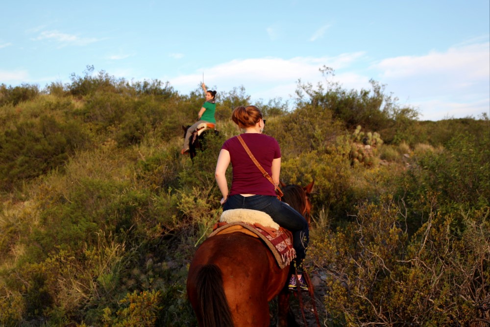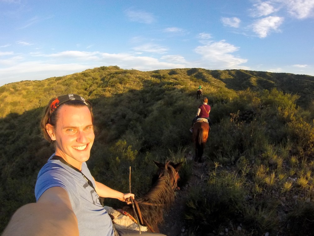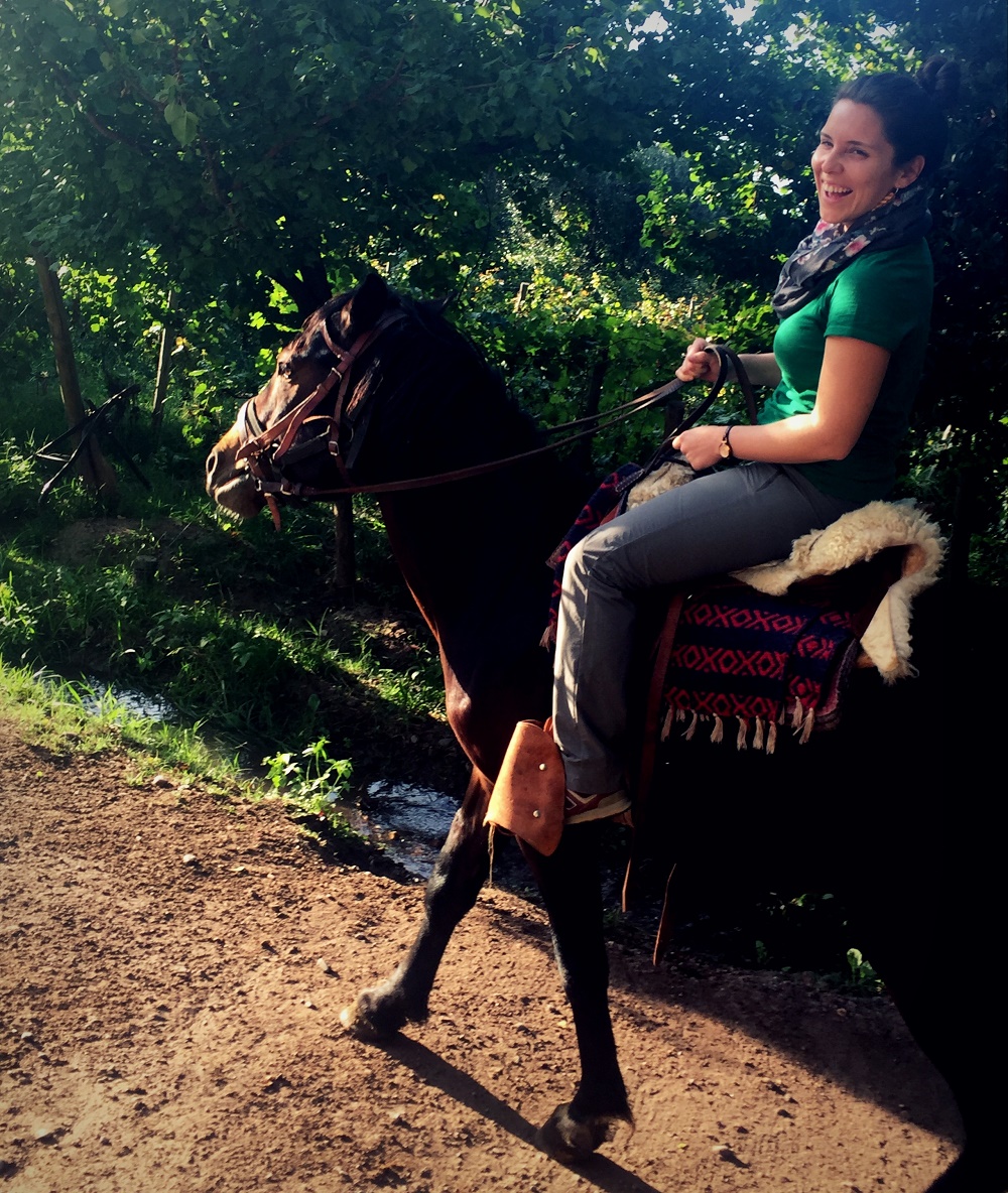 Erin suggested we do a horseback-riding trip in Lujรกn de Cuyo, one of the main wine areas near Mendoza. As the unabashed novice horseback rider of our group of ten, I believe I was given the best horse. His name is Padrillo, which means Stallion, and here we were exchanging jokes.