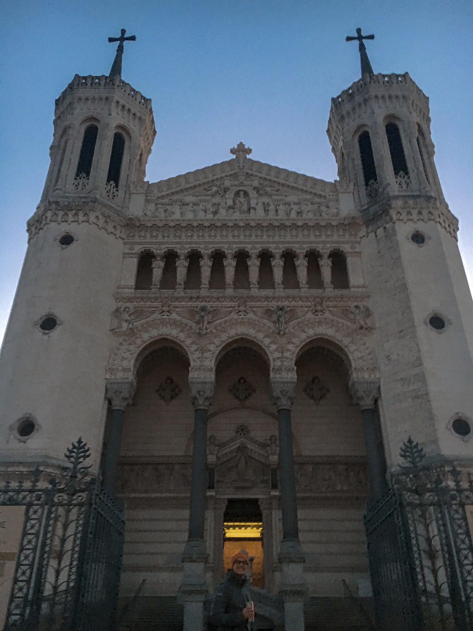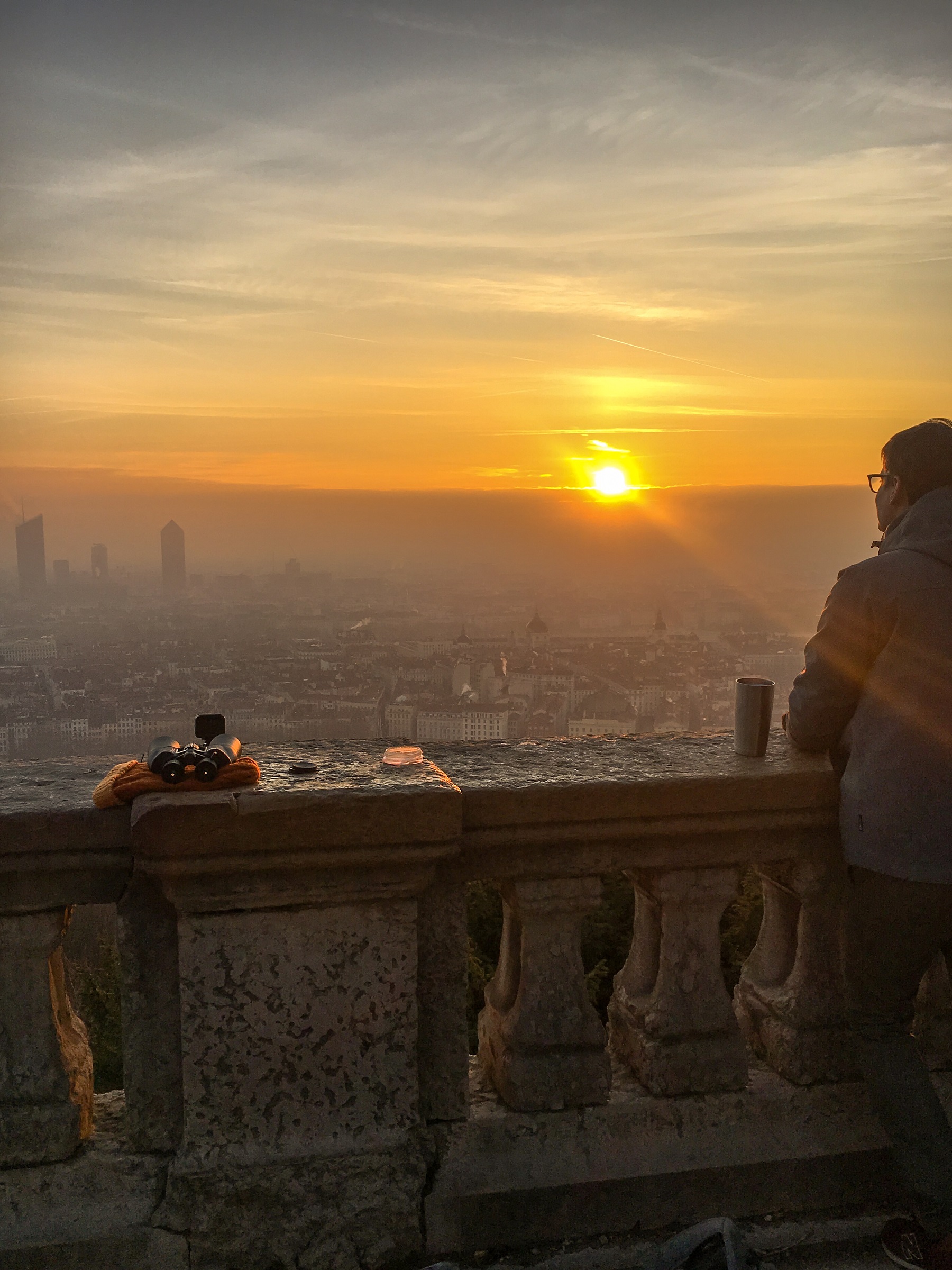 Then cross the Fourviรจre Basilica plaza, coffee thermos in hand, to get to the overlook.