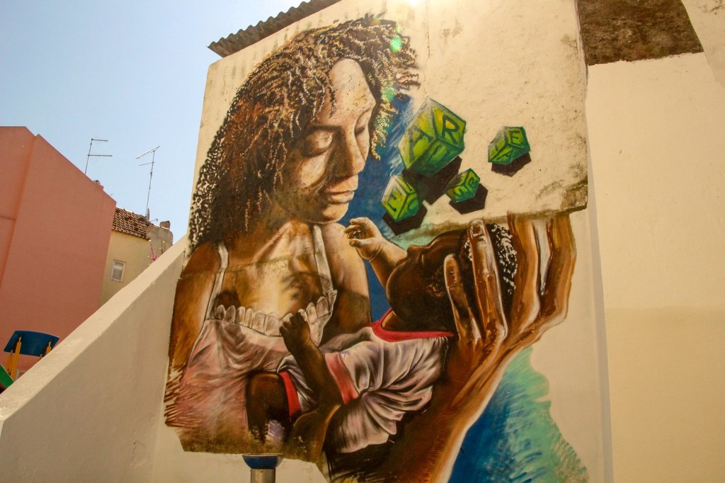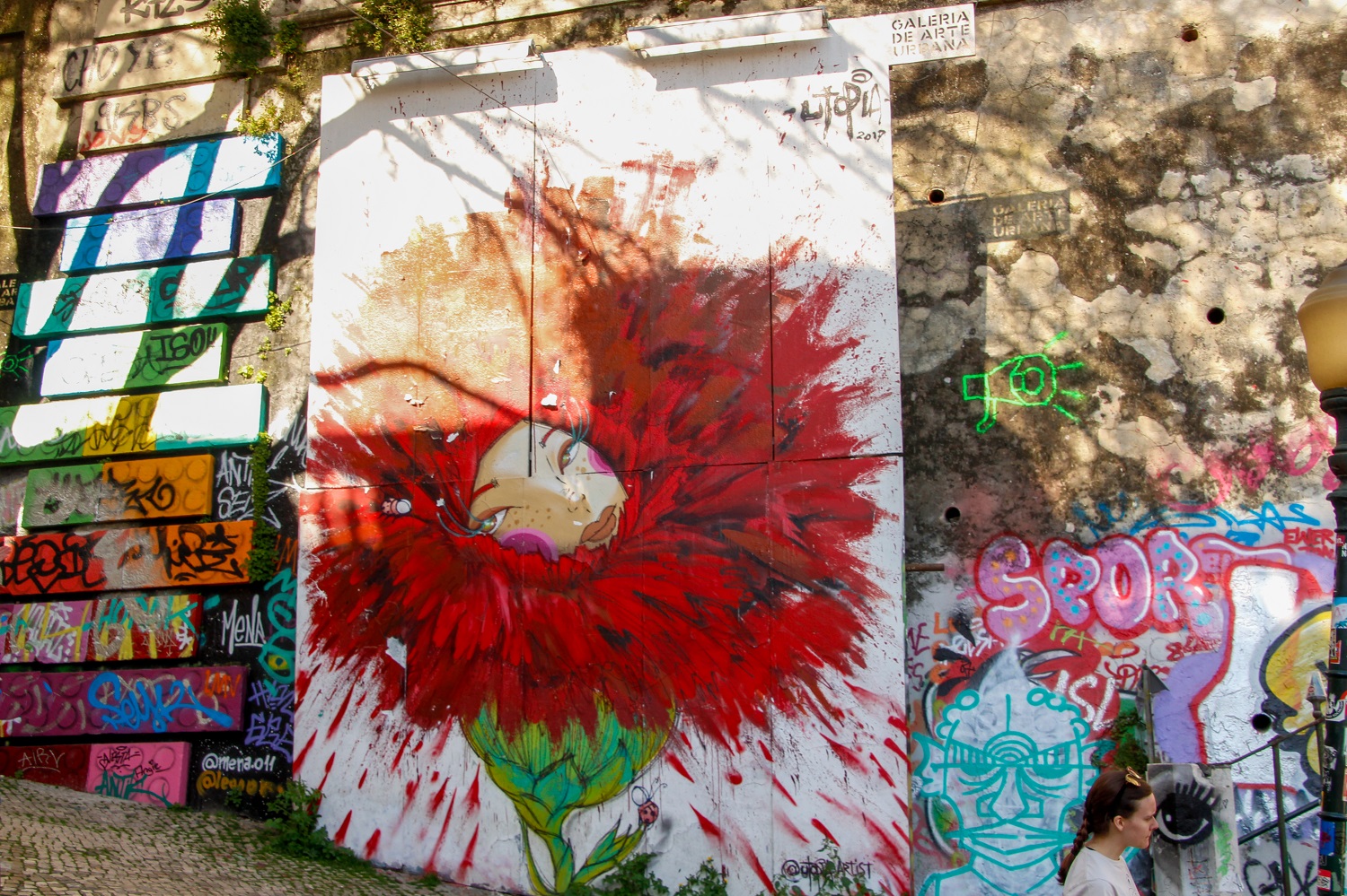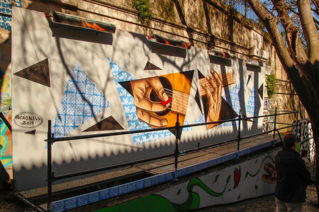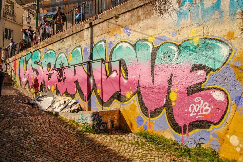 One of the designated street art areas runs along the Glรณria Funicular, a funicular system up and running since 1885.