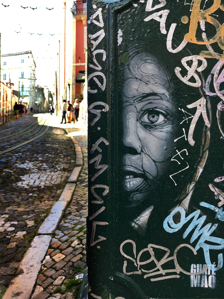 Lisbon proved a rich canvas for street art. With encouragement from the city to focus on certain areas, urban artists are free to work in broad daylight and given time to do impressive work. We easily found a tour and ended up spending the better part of a Saturday meeting artists through their work. Many are from Europe, including France, and we saw a lot of familiar tags, face molds, and mini-mosaics that were familiar from Paris.