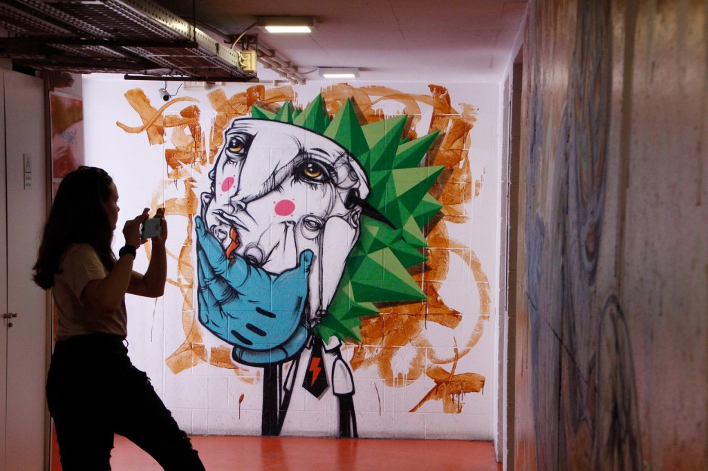 Portuguese artist Vhils is famous for his deconstructive art, either using mini explosions to create images and text, or a hammer drill as he did here.